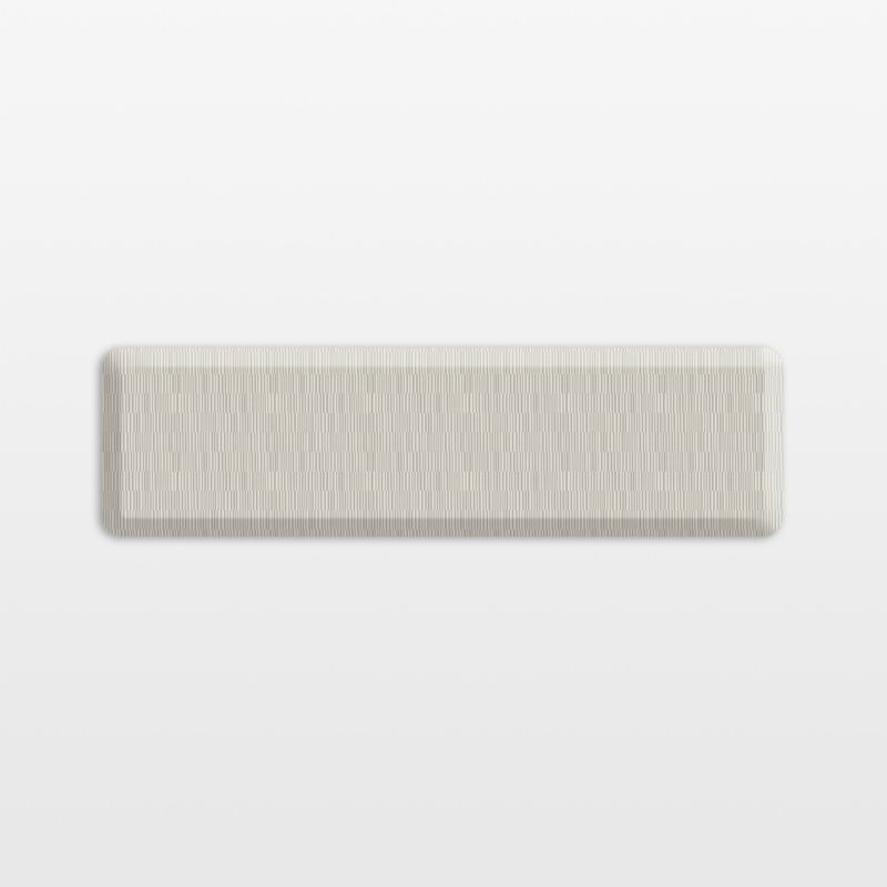 Staggered stripes in grey on cream pattern this fabric-topped kitchen mat made just for us. Thick and supportive to eliminate fatigue as you cook and clean, the energy-return foam creates cloud-like comfort and reduces pain as you chop vegetables, roll out cookies and wash dishes. Thanks to its curl-free beveled edges and non-slip bottom, the mat helps create a safe workspace in the kitchen or laundry room. It can also be paired with a standing desk for a more comfortable work-from-home day. Our exclusive stain- and water-resistant mat cleans up easily with a quick swipe of a soapy cloth.