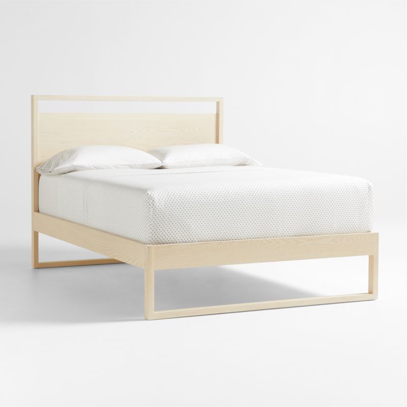 Light and bright in gorgeous washed ash and poplar wood, our Gemini Bed brings a grown-up look to your kid's bedroom. Skillfully crafted to last in solid ash, poplar and ash veneer, it's finished with subtle wire brushing to showcase the beautiful wood grain. The clean, simple design also provides plenty of storage area underneath. Plus, it can accommodate up to two Gemini Toddler Bed Rails (one on each side). Pair with other pieces in our Gemini Collection to complete the room's look.