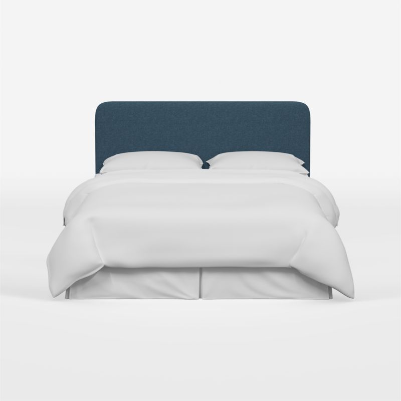 Strikingly simple Genevieve curves a tall, modern headboard with clean lines and rounded corners. Upholstered by hand, the made-to-order headboard provides an inviting spot to read and recline with soft cushioning wrapped in navy linen-blend fabric. The blue serves as a richly hued focal point in an otherwise neutral bedroom or pairs harmoniously with colorful decor and patterned bedding. Attaching easily to any standard bed frame, the Genevieve upholstered headboard instantly upgrades your sleeping space.