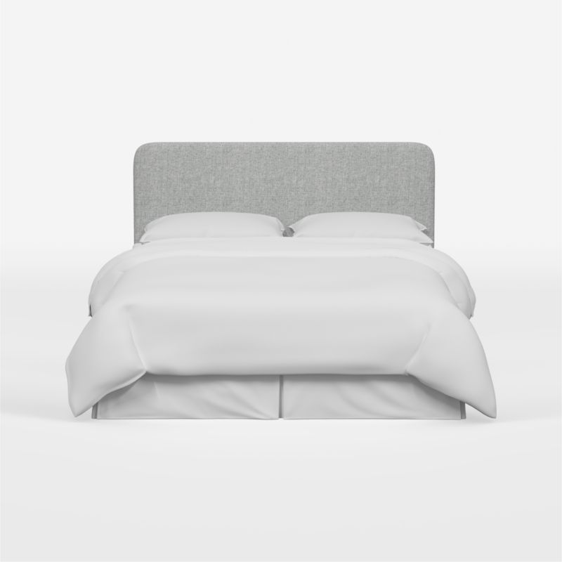 Strikingly simple Genevieve curves a tall, modern headboard with clean lines and rounded corners. Upholstered by hand, the made-to-order headboard provides an inviting spot to read and recline with soft cushioning wrapped in pumice-hued, linen-blend fabric. The grey fits right into a neutral bedroom or serves as a serene backdrop for colorful, patterned bedding. Attaching easily to any standard bed frame, the Genevieve upholstered headboard instantly upgrades your sleeping space.