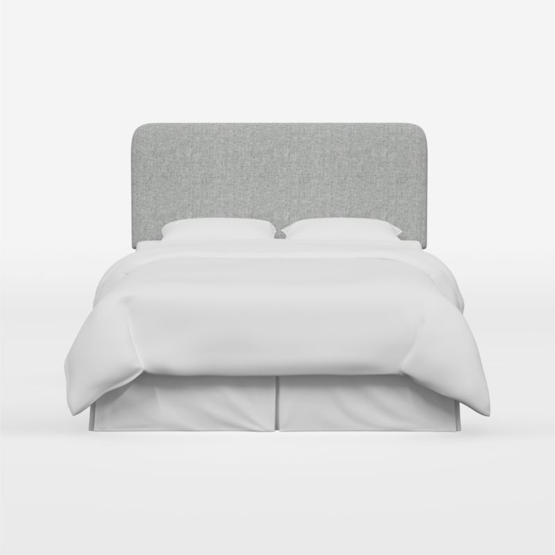 Strikingly simple Genevieve curves a tall, modern headboard with clean lines and rounded corners. Upholstered by hand, the made-to-order headboard provides an inviting spot to read and recline with soft cushioning wrapped in pumice-hued, linen-blend fabric. The grey fits right into a neutral bedroom or serves as a serene backdrop for colorful, patterned bedding. Attaching easily to any standard bed frame, the Genevieve upholstered headboard instantly upgrades your sleeping space.