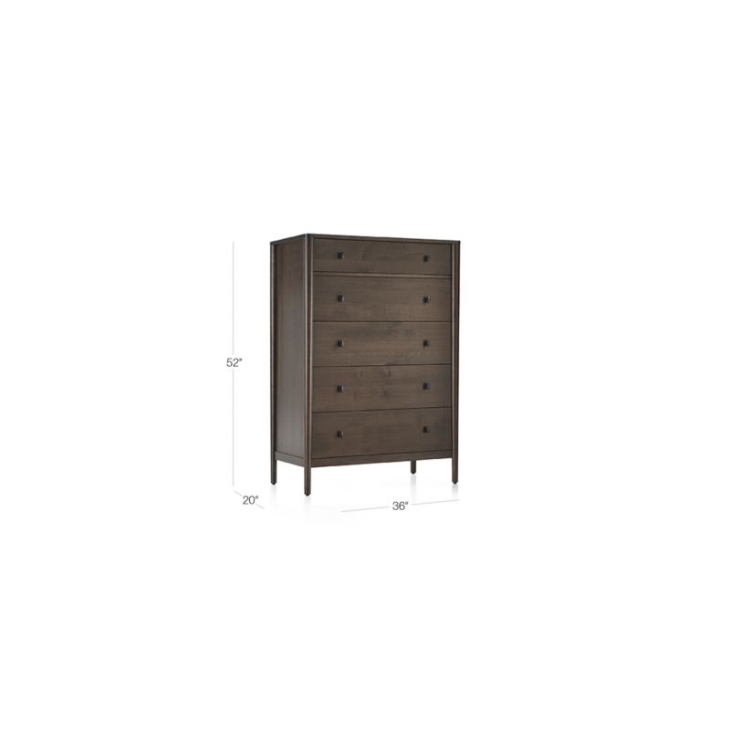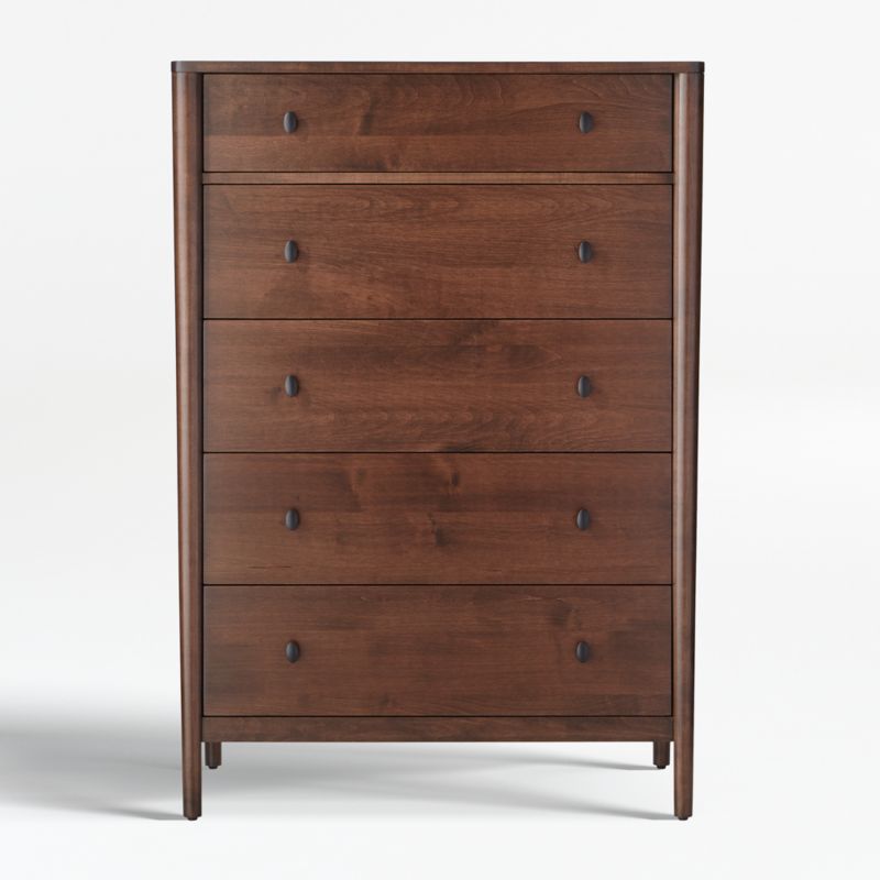 Five drawers—one small, four large—provide spacious storage for clothes and accessories. The Gia 5-Drawer Chest is a Crate and Barrel exclusive.