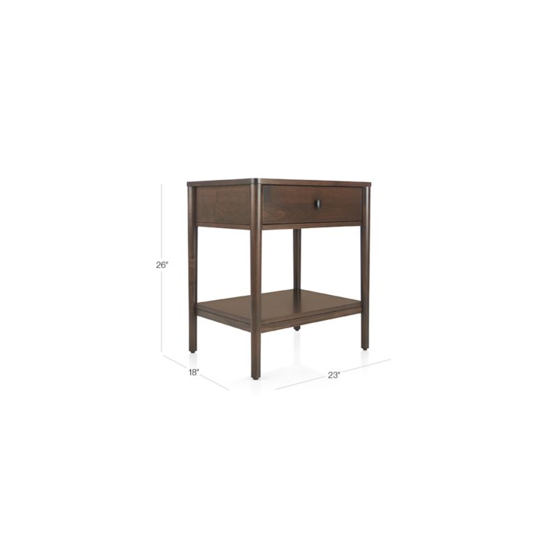 The nightstand provides bedside storage with a single drawer and open lower shelf. The Gia Nightstand is a Crate and Barrel exclusive.