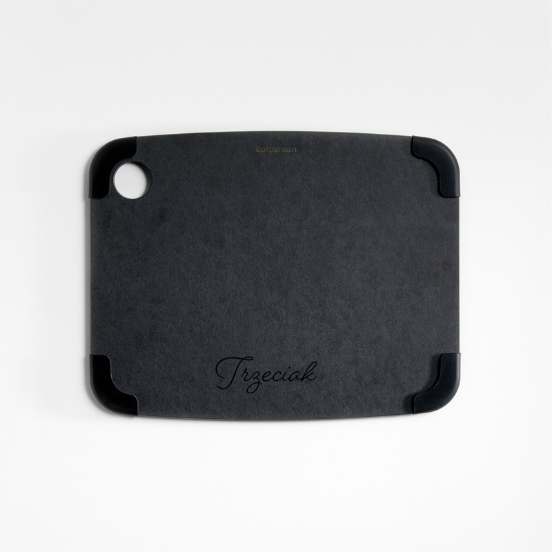 In stock and ready to ship Loading...Crate & BarrelSKU 244986Personalized Epicurean ® Black Non-Slip Paper Composite Cutting Board 11.5"x9"$49.95includes $15 personalization feeFree Shipping Eligible0 of 1 purchasedAdd to Cart