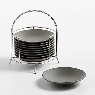In stock and ready to ship Loading...Crate & BarrelSKU 584106Craft Charcoal Round Stoneware Appetizer Plates with Stainless Steel Stand, Set of 10$94.45Free Shipping Eligible0 of 1 purchasedAdd to Cart