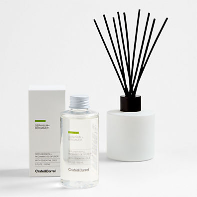 In stock and ready to ship Loading...Crate & BarrelSKU 392422Geranium + Bergamot Diffuser$29.95Free Shipping Eligible0 of 1 purchasedAdd to Cart