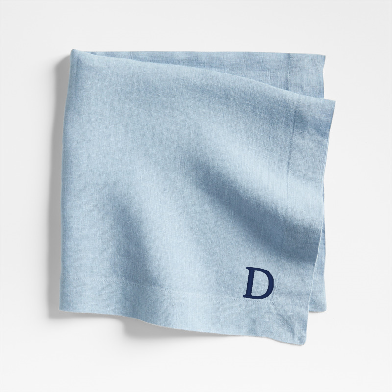 In stock and ready to ship Loading...Crate & BarrelSKU 544133Personalized Marin Light Blue EUROPEAN FLAX ™-Certified Linen Napkins, Set of 8$149.60includes $30 personalization feeShips free0 of 1 purchasedAdd to Cart