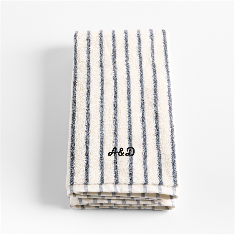 In stock and ready to ship Loading...Crate & BarrelSKU 627060Personalized Organic Turkish Cotton Pampas Ivory and Evening Blue Stripe Hand Towel$44.95includes $15 personalization feeShips free0 of 2 purchasedAdd to Cart