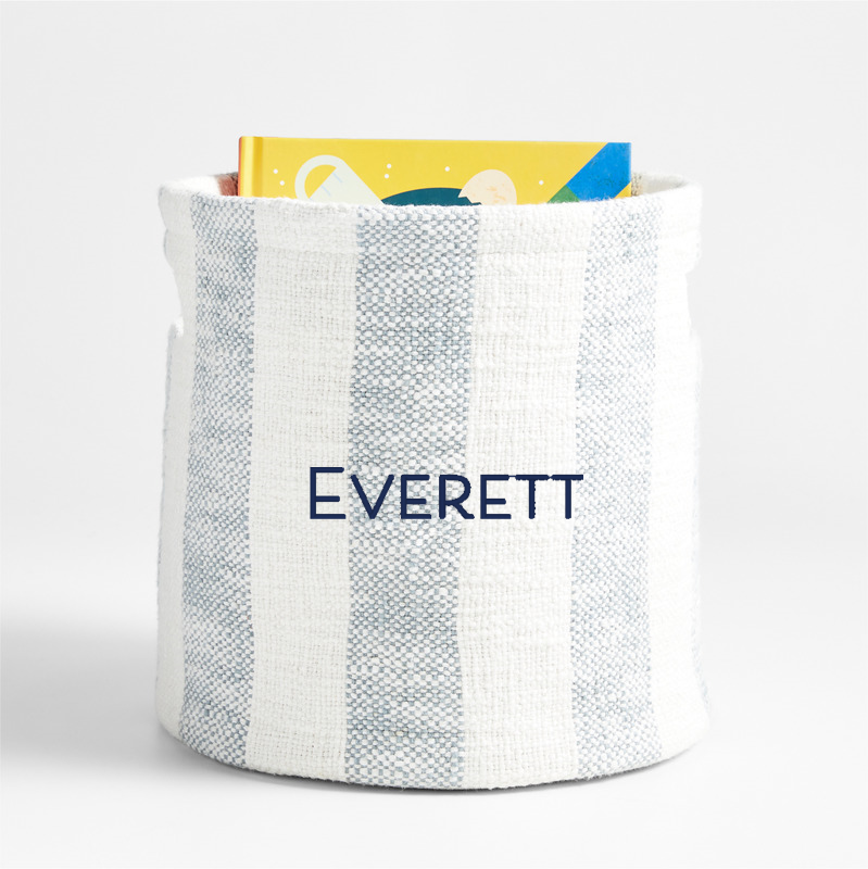 In stock and ready to ship Loading...Crate & KidsSKU 573202Personalized Cove Mist Blue Organic Cotton Striped Shelf Storage Bin$61.00includes $15 personalization feeFree Shipping Eligible0 of 1 purchasedAdd to Cart