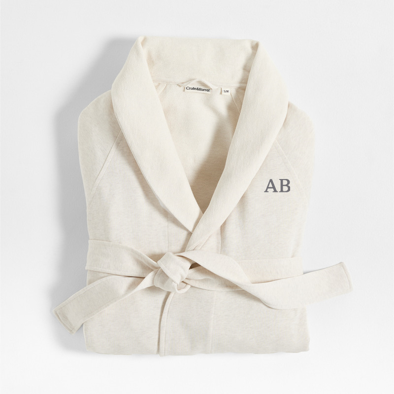 In stock and ready to ship Loading...Crate & BarrelSKU 359811Personalized Organic L/XL Cotton Jersey Heathered Grey Bath Robe$159.95includes $15 personalization feeFree Ship Over $590 of 1 purchasedAdd to Cart