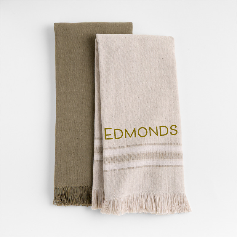 In stock and ready to ship Loading...Crate & BarrelSKU 339959Personalized Craft Sage Green Organic Cotton Dish Towels, Set of 2$44.95includes $15 personalization feeFree Shipping Eligible0 of 1 purchasedAdd to Cart