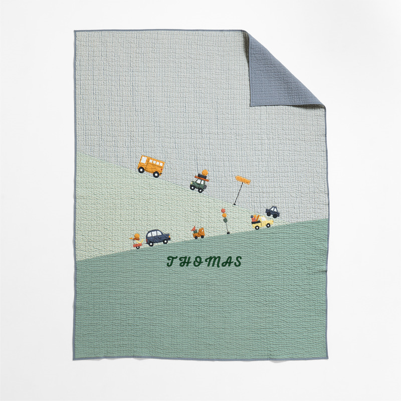 In stock and ready to ship Loading...Crate & KidsSKU 181821Personalized Wheely Cool Embroidered Organic Cotton Kids Twin Quilt$214.95includes $15 personalization feeShips free0 of 1 purchasedAdd to Cart