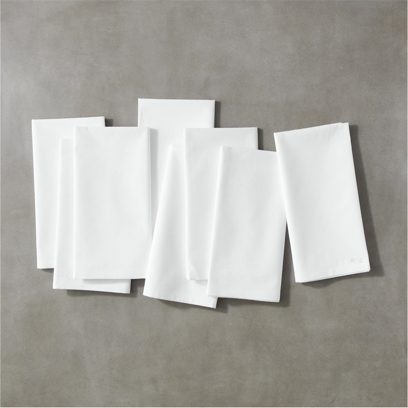 See in-stock & shipping info on CB2 Loading...CB2SKU 664382Personalized Poplin White Cloth Napkins Set of 8Set Savings $54.00 open stock $54.60includes $15 personalization fee0 of 2 purchasedBuy on CB2