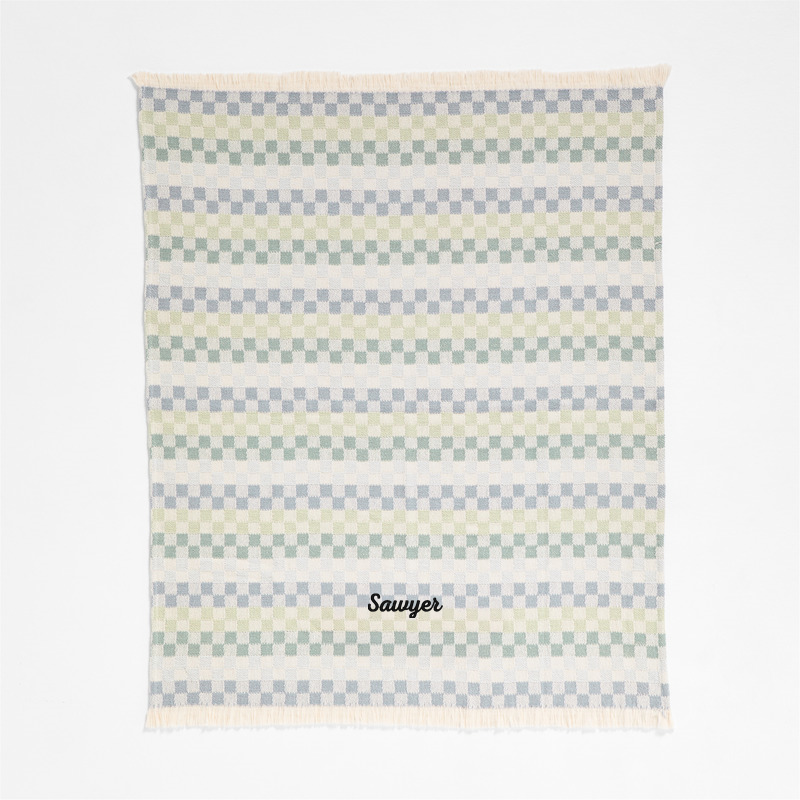 In stock and ready to ship Loading...Crate & KidsSKU 392067Personalized Multi Checker Cool Jacquard Woven Organic Cotton Baby Stroller BlanketSale $59.96 reg. $74.95includes $15 personalization feeShips free0 of 1 purchasedAdd to Cart