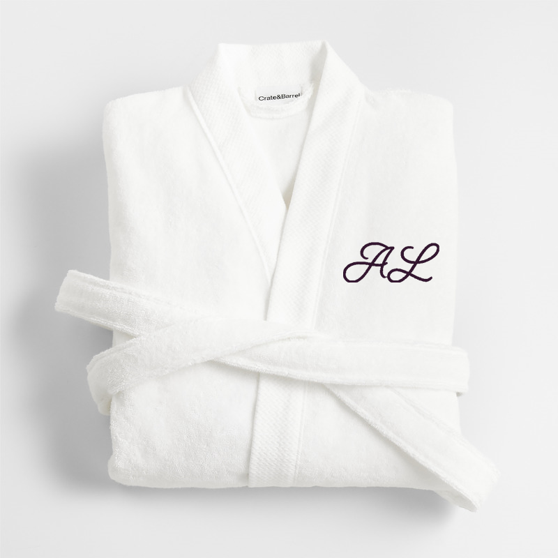 In stock and ready to ship Loading...Crate & BarrelSKU 569603Personalized Organic Turkish Cotton Crisp White Bath Robe S/M$114.95includes $15 personalization feeFree Shipping Eligible0 of 1 purchasedAdd to Cart