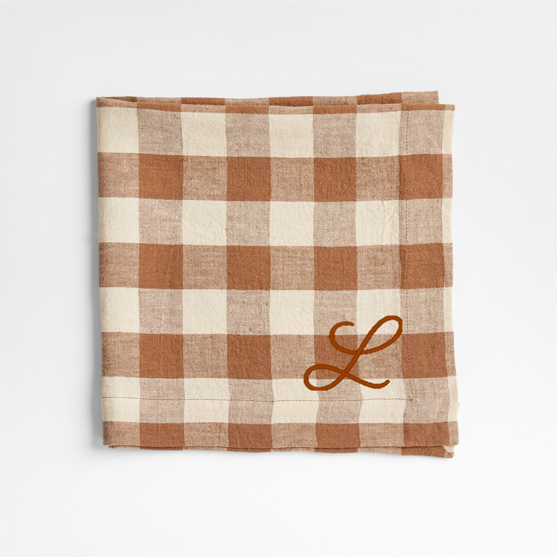 No longer available online. Loading...Crate & BarrelSKU 494092Personalized Marin Walnut Brown EUROPEAN FLAX ™-Certified Linen Buffalo Check Napkins, Set of 4$74.80includes $15 personalization feeToday Only! Free Ship Over $990 of 1 purchasedAdd to Cart