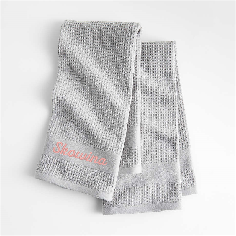 In stock and ready to ship Loading...Crate & BarrelSKU 493346Personalized Waffle-Terry Alloy Grey Organic Cotton Kitchen Towels, Set of 2$37.95includes $15 personalization feeFree Shipping Eligible0 of 1 purchasedAdd to Cart