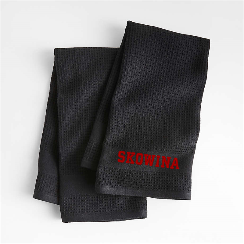 In stock and ready to ship Loading...Crate & BarrelSKU 493354Personalized Waffle-Terry Black Organic Cotton Kitchen Towels, Set of 2$37.95includes $15 personalization feeFree Shipping Eligible0 of 1 purchasedAdd to Cart