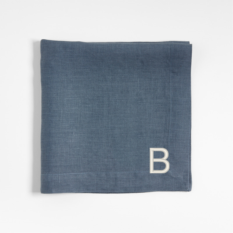 In stock and ready to ship Loading...Crate & BarrelSKU 336946Personalized Marin Slate Blue EUROPEAN FLAX ™-Certified Linen Napkin$29.95includes $15 personalization feeFree Shipping Eligible0 of 1 purchasedAdd to Cart