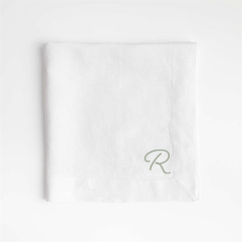 In stock and ready to ship Loading...Crate & BarrelSKU 544516Personalized Marin White EUROPEAN FLAX ™-Certified Linen Napkins, Set of 8$149.60includes $30 personalization feeShips free0 of 1 purchasedAdd to Cart