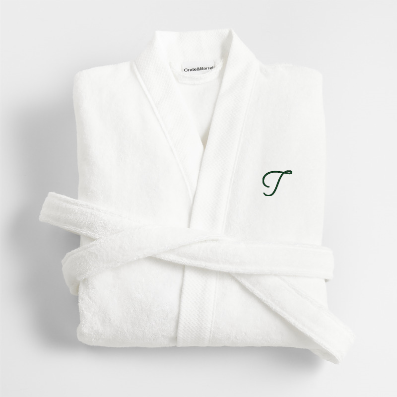 In stock and ready to ship Loading...Crate & BarrelSKU 569603Personalized Organic Turkish Cotton Crisp White Bath Robe S/M$114.95includes $15 personalization feeFree Shipping Eligible0 of 1 purchasedAdd to Cart