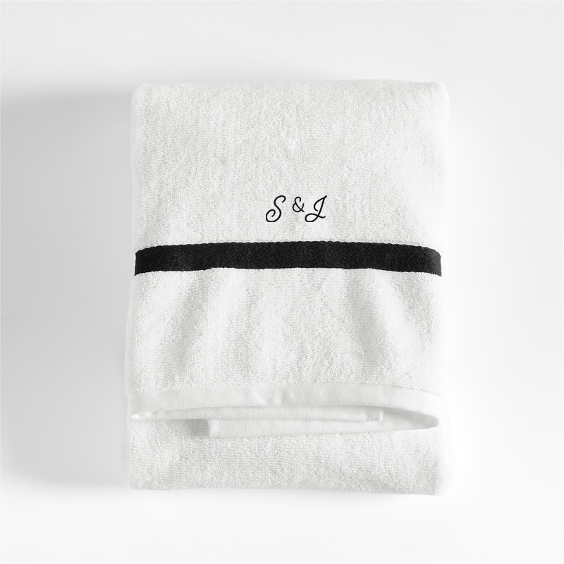 In stock and ready to ship Loading...Crate & BarrelSKU 360039Personalized Tuxedo Stripe Organic Cotton Ink Black Bath Towel$59.95includes $15 personalization feeShips free0 of 2 purchasedAdd to Cart