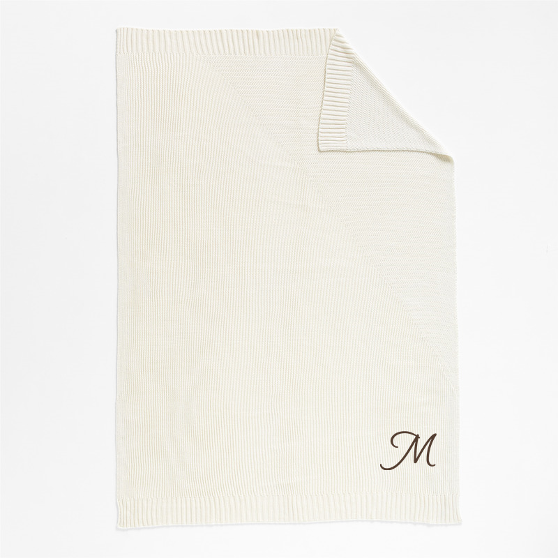 In stock and ready to ship Loading...Crate & BarrelSKU 577204Personalized Sweater Knit 70"x55" Cream White Throw Blanket$134.95includes $15 personalization feeShips free0 of 1 purchasedAdd to Cart