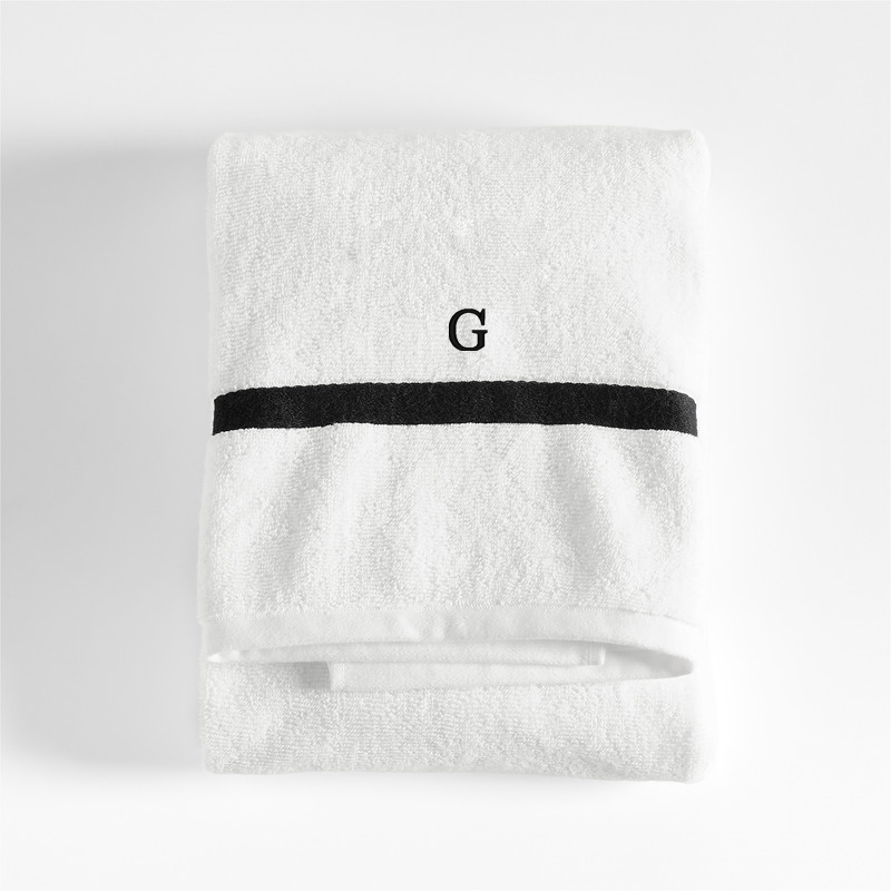 In stock and ready to ship Loading...Crate & BarrelSKU 360039Personalized Tuxedo Stripe Organic Cotton Ink Black Bath Towel$59.95includes $15 personalization feeEnds Today! Free Ship Over $990 of 4 purchasedAdd to Cart