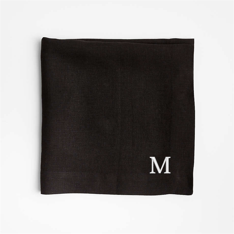 In stock and ready to ship Loading...Crate & BarrelSKU 543785Personalized Marin Ink Black EUROPEAN FLAX â„¢-Certified Linen Napkin, Set of 4$74.80includes $15 personalization feeShips free0 of 1 purchasedAdd to Cart