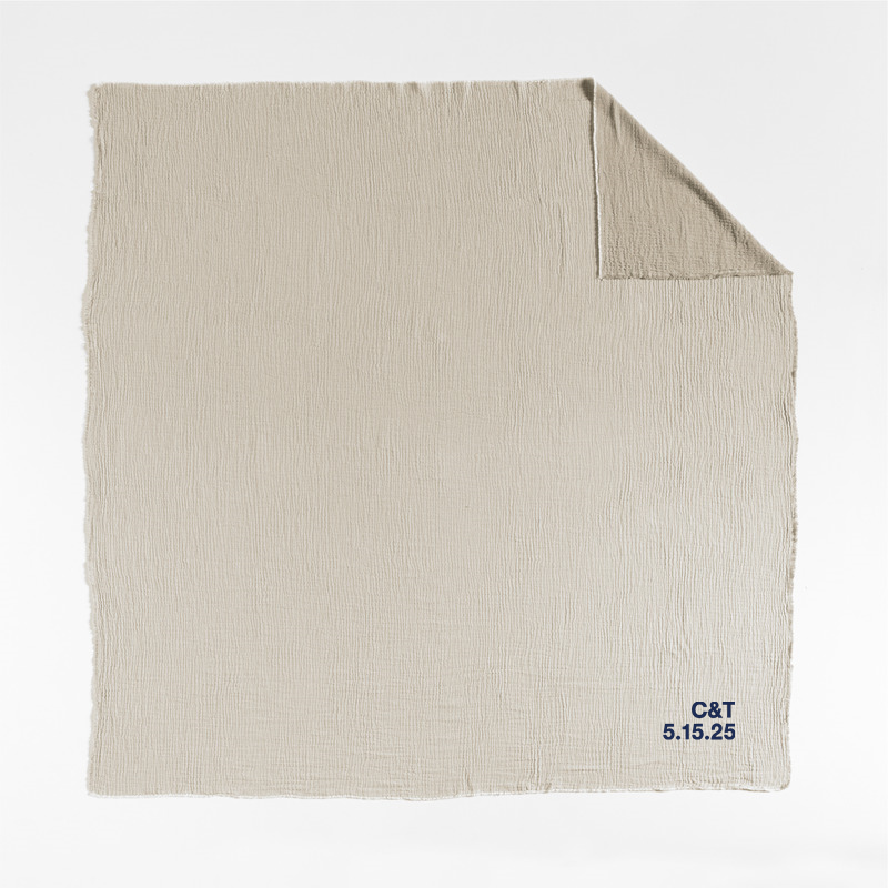 In stock and ready to ship Loading...Crate & BarrelSKU 575407Personalized Reversible Stripe Gauze 80"x80" Taupe Brown and Arctic Ivory Bed Blanket$144.95includes $15 personalization feeShips free0 of 1 purchasedAdd to Cart