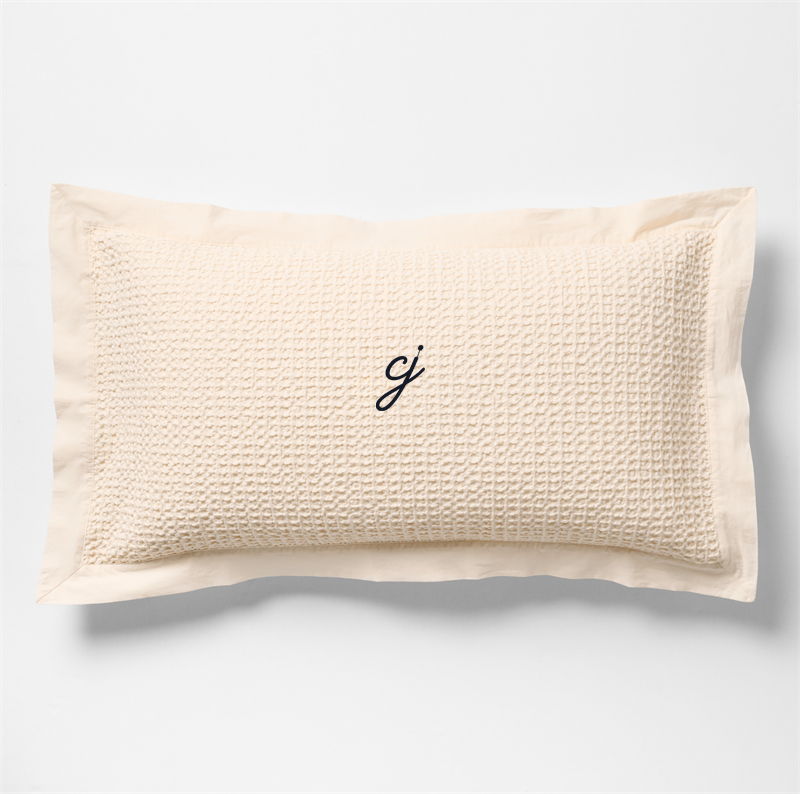 In stock and ready to ship Loading...Crate & BarrelSKU 632926Personalized Organic Cotton Waffle Undyed King Bed Pillow Sham$69.95includes $15 personalization feeShips free0 of 2 purchasedAdd to Cart