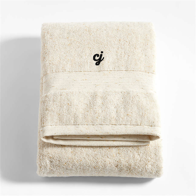 In stock and ready to ship Loading...Crate & BarrelSKU 424342Personalized Organic Turkish Cotton Natural Beige Fleck Bath Towel$59.95includes $15 personalization feeShips free0 of 2 purchasedAdd to Cart