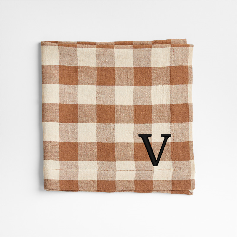 In stock and ready to ship Loading...Crate & BarrelSKU 412766Personalized Marin Walnut Brown EUROPEAN FLAX ™-Certified Linen Buffalo Check Napkin$29.95includes $15 personalization feeShips free0 of 6 purchasedAdd to Cart