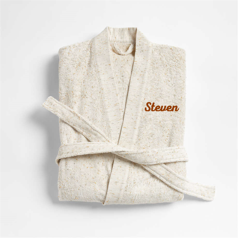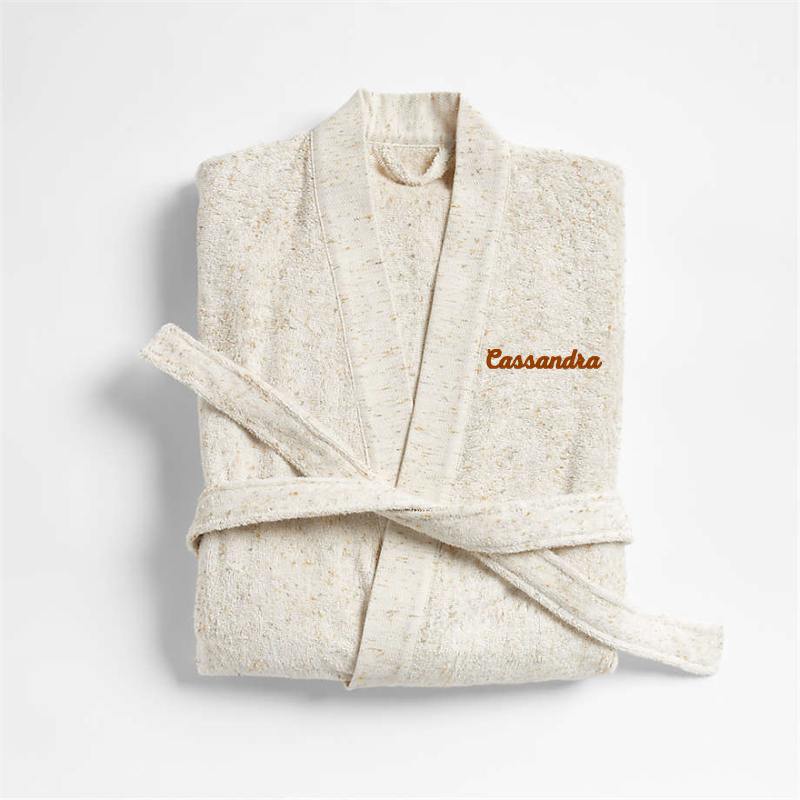 In stock and ready to ship Loading...Crate & BarrelSKU 424209Personalized Organic Small/Medium Turkish Natural Beige Fleck Bathrobe$134.95includes $15 personalization feeShips free0 of 1 purchasedAdd to Cart