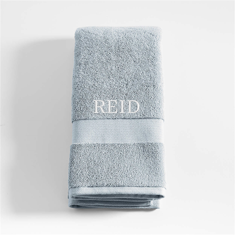 In stock and ready to ship Loading...Crate & BarrelSKU 218045Personalized Organic Turkish Cotton Mist Blue Bath Towel$50.95includes $16 personalization feeShips free0 of 4 purchasedAdd to Cart