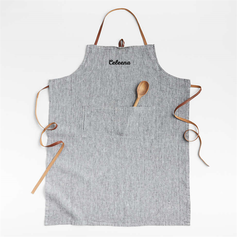 In stock and ready to ship Loading...Crate & BarrelSKU 668474Personalized Chambray Organic Cotton Apron$49.95includes $15 personalization feeFree Shipping Eligible0 of 1 purchasedAdd to Cart