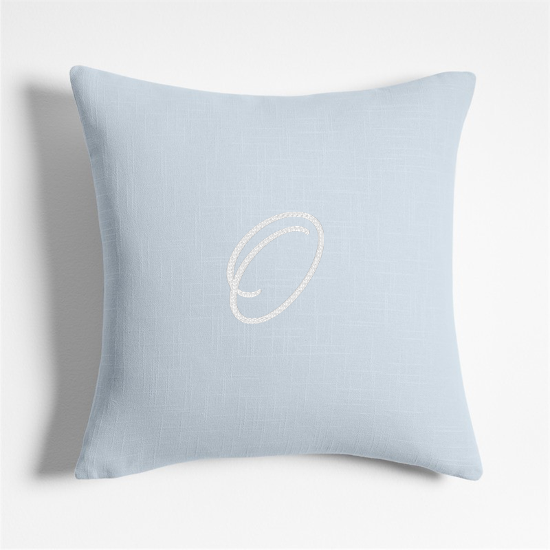 In stock and ready to ship Loading...Crate & BarrelSKU 655156Personalized Organic Cotton Monogrammable 20"x20" Sky Blue Throw Pillow with Feather InsertClearance $45.47 reg. $55.00includes $16 personalization feeShips free0 of 1 purchasedAdd to Cart