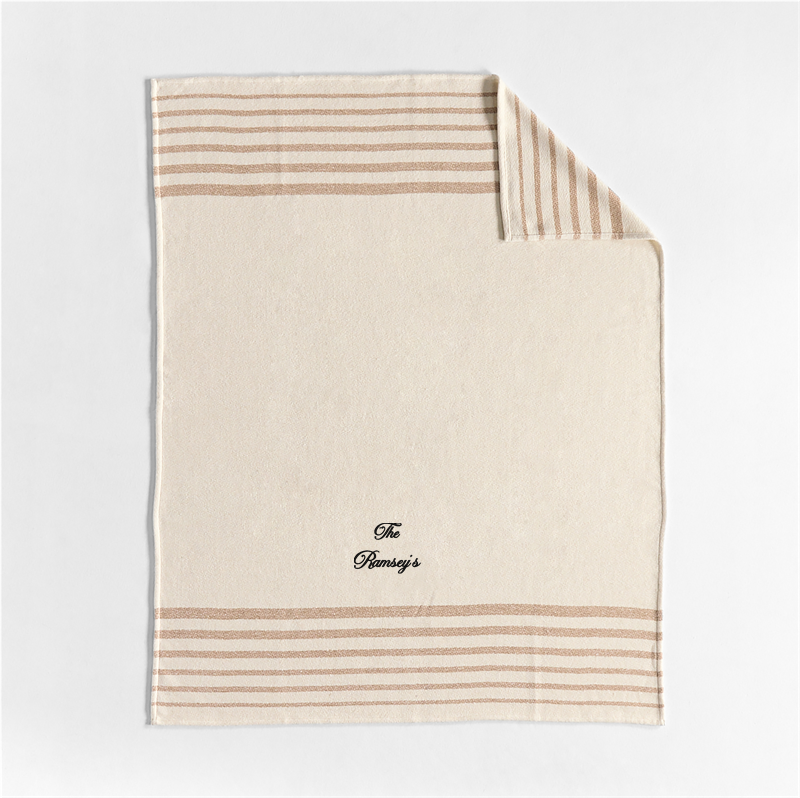 In stock and ready to ship Loading...Crate & BarrelSKU 605776Personalized Bungalow 70"x55" Arctic Ivory Throw Blanket$114.95includes $15 personalization feeShips free0 of 1 purchasedAdd to Cart