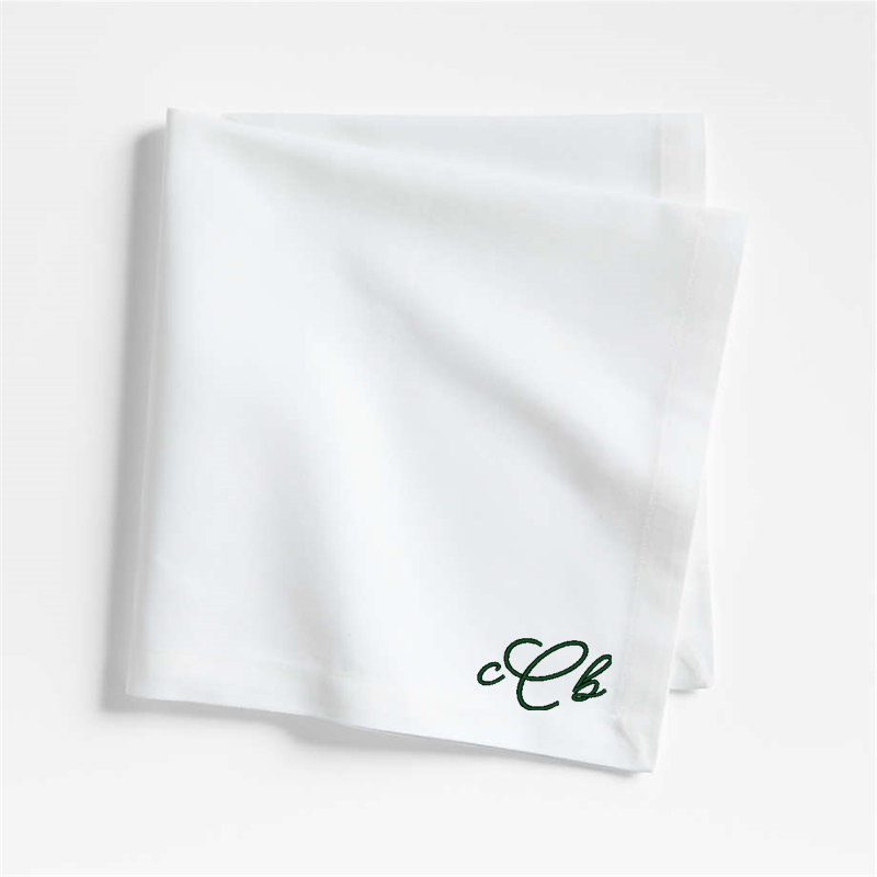 In stock and ready to ship Loading...Crate & BarrelSKU 545188Personalized Aspen Crisp White Organic Cotton Napkin, Set of 8$85.60includes $30 personalization feeShips free1 of 2 purchasedAdd to Cart