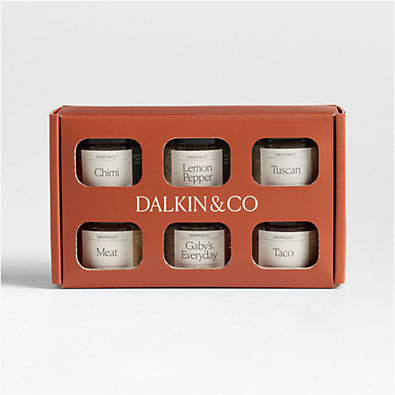 In stock and ready to ship Loading...Crate & BarrelSKU 401019Dalkin & Co. Mini Discovery 6-Jar Seasoning Gift Set$65.00Free Shipping Eligible0 of 1 purchasedAdd to Cart