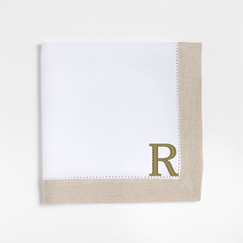 In stock and ready to ship Loading...Crate & BarrelSKU 108506Personalized Marin Natural and Cream EUROPEAN FLAX ™-Certified Linen Napkins with Hemstitch, Set of 8$157.60includes $30 personalization feeShips free0 of 1 purchasedAdd to Cart
