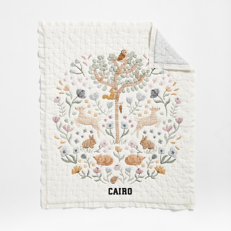 In stock and ready to ship Loading...Crate & KidsSKU 149832Personalized Wonderland Prairie Embroidered 100% Organic Cotton Voile Baby Crib Quilt$184.95includes $15 personalization feeShips free0 of 1 purchasedAdd to Cart