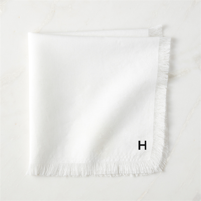 See in-stock & shipping info on CB2 Loading...CB2SKU 105728Personalized Yico White Organic Cotton Fringe NapkinClearance $24.97 reg. $30.95includes $15 personalization fee0 of 8 purchasedBuy on CB2