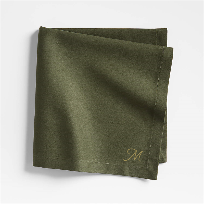 In stock and ready to ship Loading...Crate & BarrelSKU 545165Personalized Aspen Burnt Green Organic Cotton Napkins, Set of 8$85.60includes $30 personalization feeShips free0 of 1 purchasedAdd to Cart