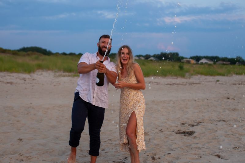 Once upon a time, there were two gym rats who ended up working at the same gym. Later, they found out that they lived a few houses away from each other their whole lives. So a few Insta DM's, workout dates, & one spoiled puppy later, the big bearded Prince Charming proposed to her on the beach at sunset. <3 The. Begining. Now we need plates...