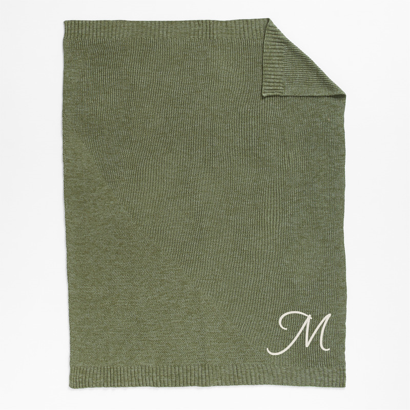 In stock and ready to ship Loading...Crate & BarrelSKU 577153Personalized Sweater Knit 70"x55" Verte Green Throw Blanket$134.95includes $15 personalization feeShips free0 of 1 purchasedAdd to Cart