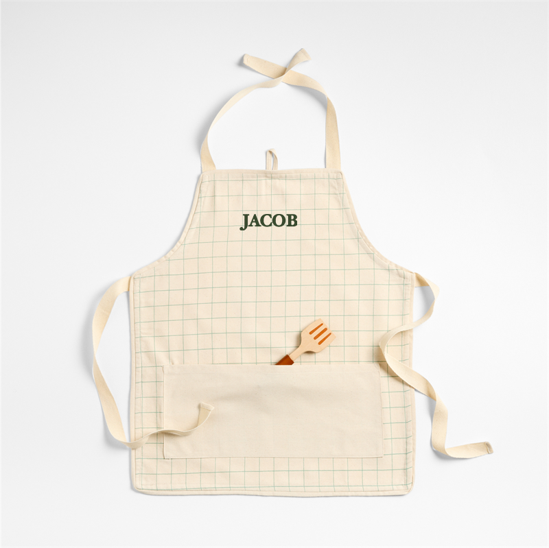 Purchase now and we'll ship when it's available. Estimated in late April 2026.Loading...Crate & KidsSKU 240024Personalized Green Grid Kids Chef Apron$44.95includes $15 personalization feeShips free0 of 1 purchasedAdd to Cart
