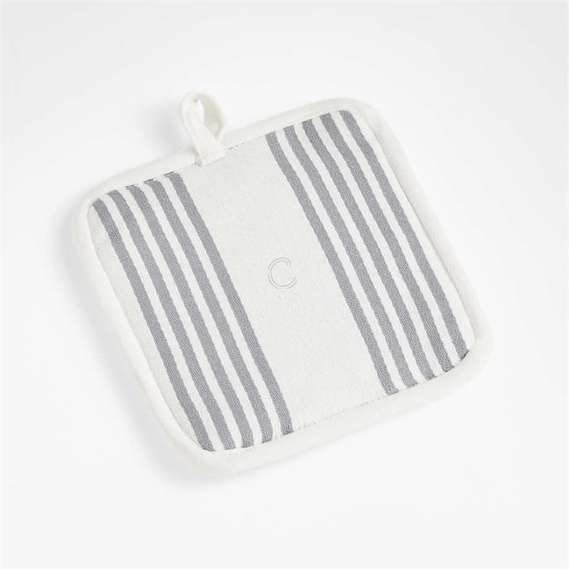 In stock and ready to ship Loading...Crate & BarrelSKU 432937Personalized Cuisine Stripe Grey Organic Cotton Pot Holder$29.95includes $15 personalization feeFree Shipping Eligible0 of 2 purchasedAdd to Cart