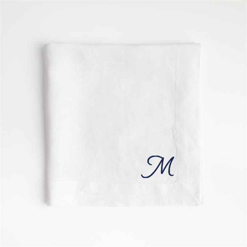 In stock and ready to ship Loading...Crate & BarrelSKU 544044Personalized Marin White EUROPEAN FLAX ™-Certified Linen Napkin, Set of 4$74.80includes $15 personalization feeShips free0 of 3 purchasedAdd to Cart