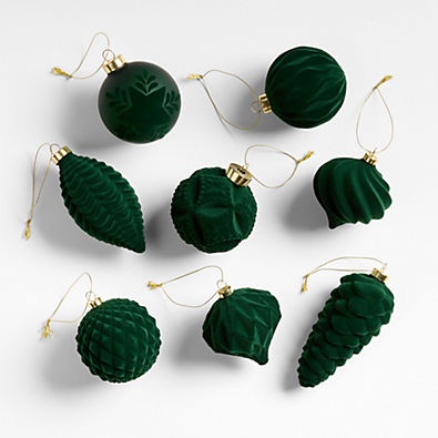 In stock and ready to ship. Loading...Crate & BarrelSKU 246927Green Velvet Christmas Ornaments, Boxed Set of 8$59.95Free Shipping Eligible0 of 1 purchasedAdd to Cart